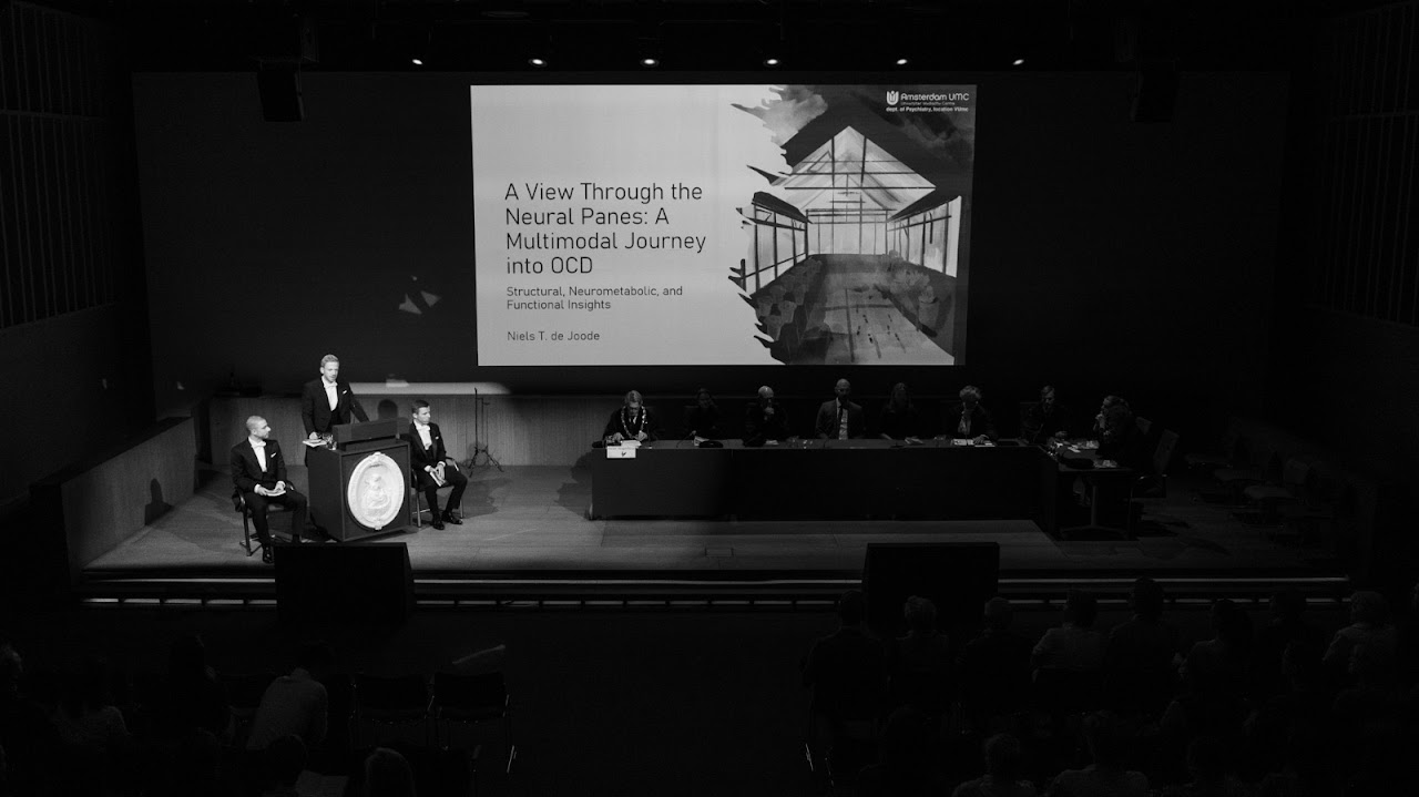 On the 7th of October, Niels de Joode successfully defended his thesis “A view through the neural panes: a multimodal journey into OCD”, which was supervised by Chris Vriend, Anouk Schrantee, Ton van Balkom and Odile van den Heuvel. Niels did a great job and was lauded by all opponents for takling such a challenging fMRS study at 7T. We enjoyed the celebratory day and great party on Friday!